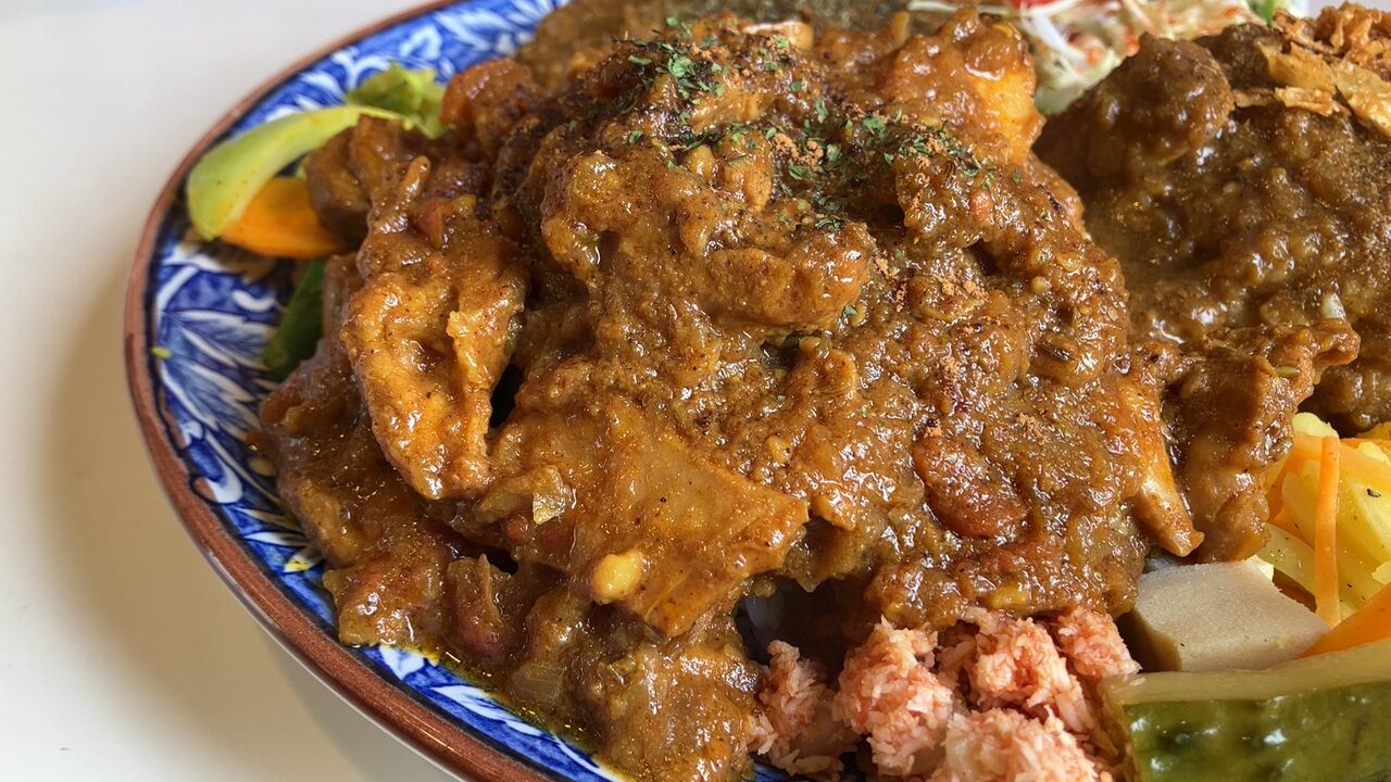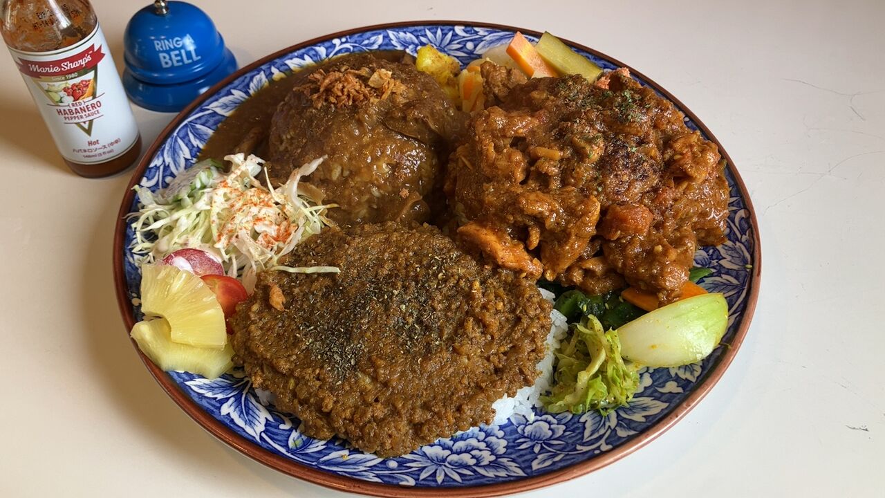 函館ナントカカレー&モツたっぷりモツカレー&スパイスチキンカレーの3種盛りプレートモリモリ/1800yen