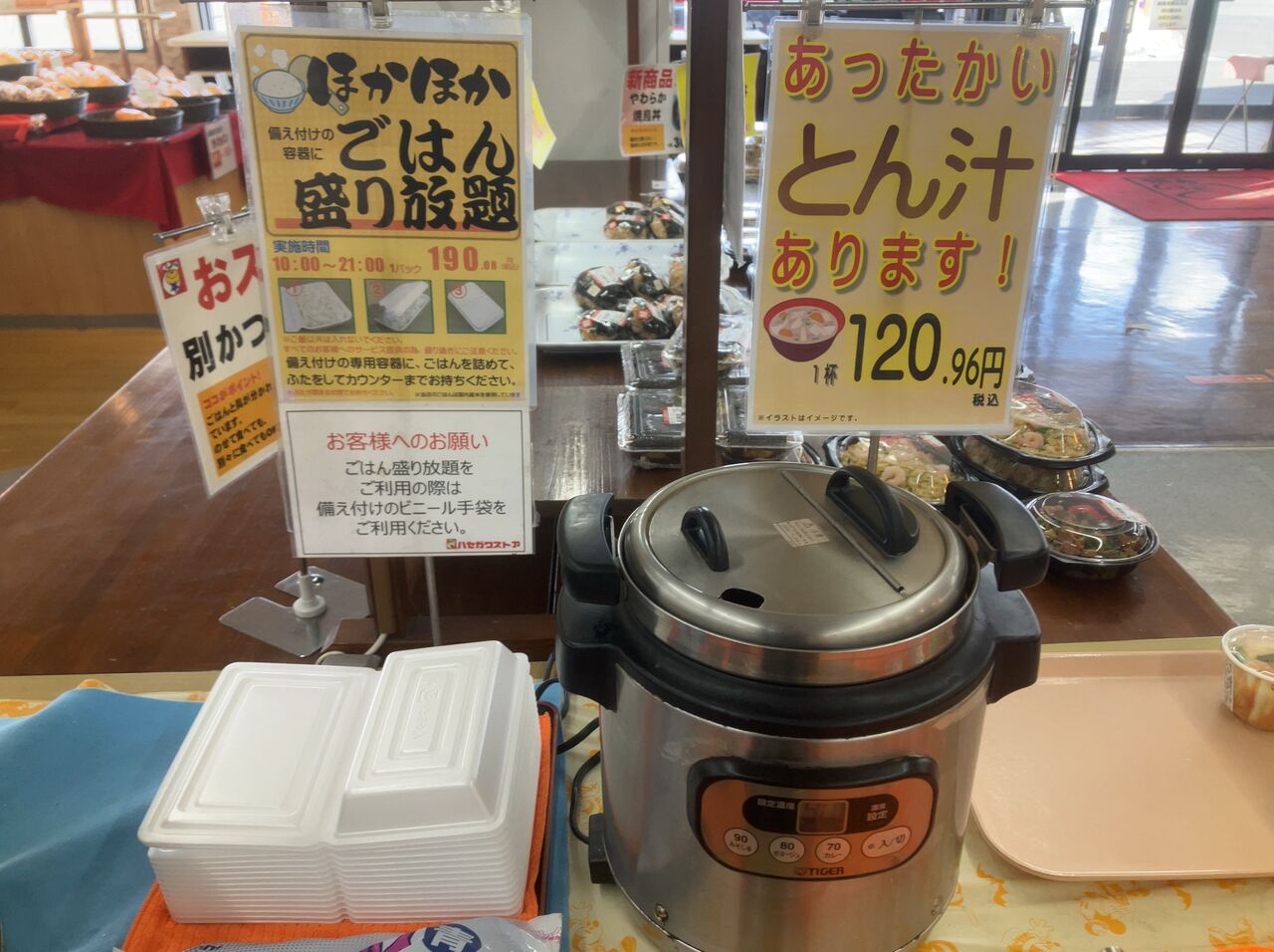 カップにすきな様にモリモリできてこのご時世になんと120yenというとん汁っ!✨
