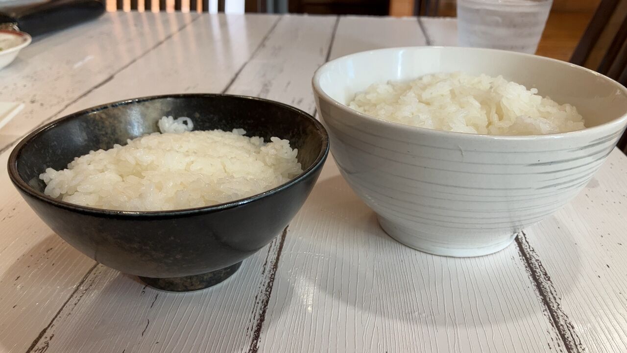 小ライスが普通の感覚のライスくらいライスしてて、ライスの方は見た目以上に深めなどんぶりライスでとんでもねぇ量のライスだったんだ…