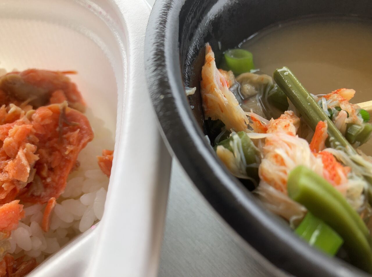 そして…100yenのお汁は何かpeaceお尋ねしたら、この日はなんとカニとわらびでさー!