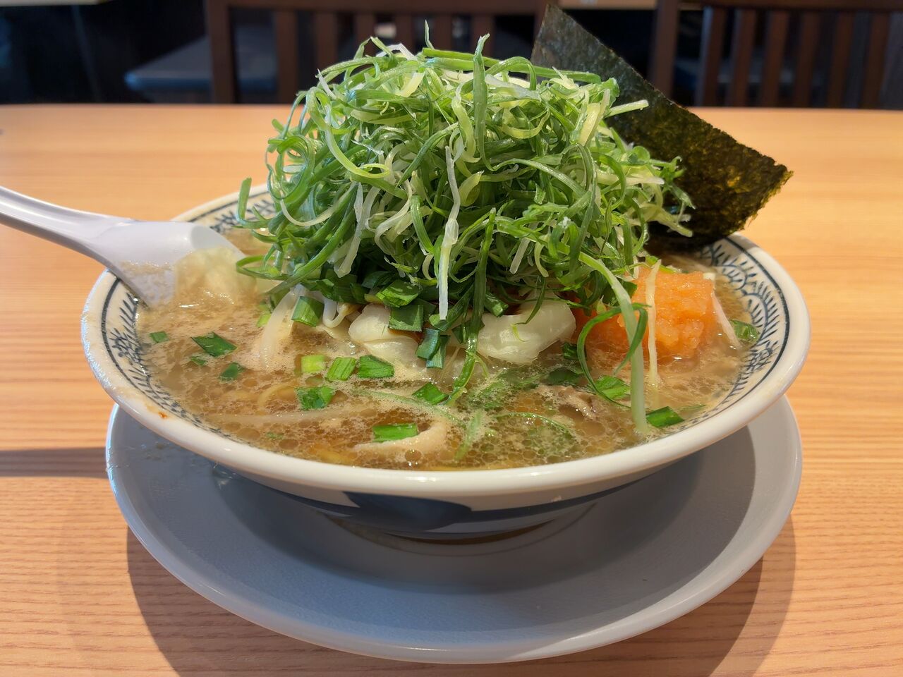 野菜肉そばのドッカンねぎトッピングwith丸源餃子セット/1419yen