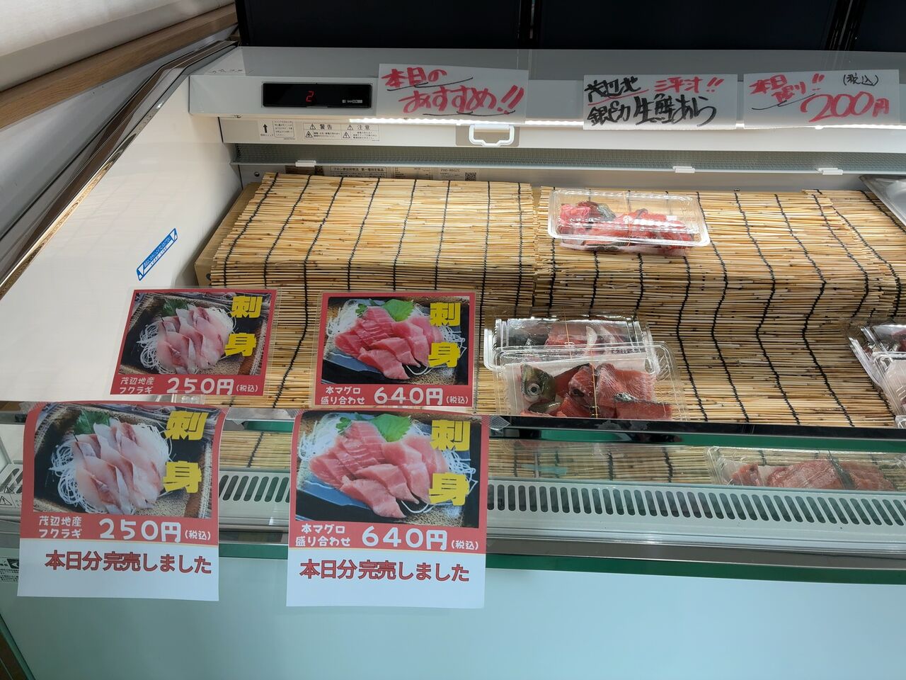 思ったよかかなりこぢんまりと展開してて、午後にアレしたからかお刺身なんかは売り切れちゃってるしで…